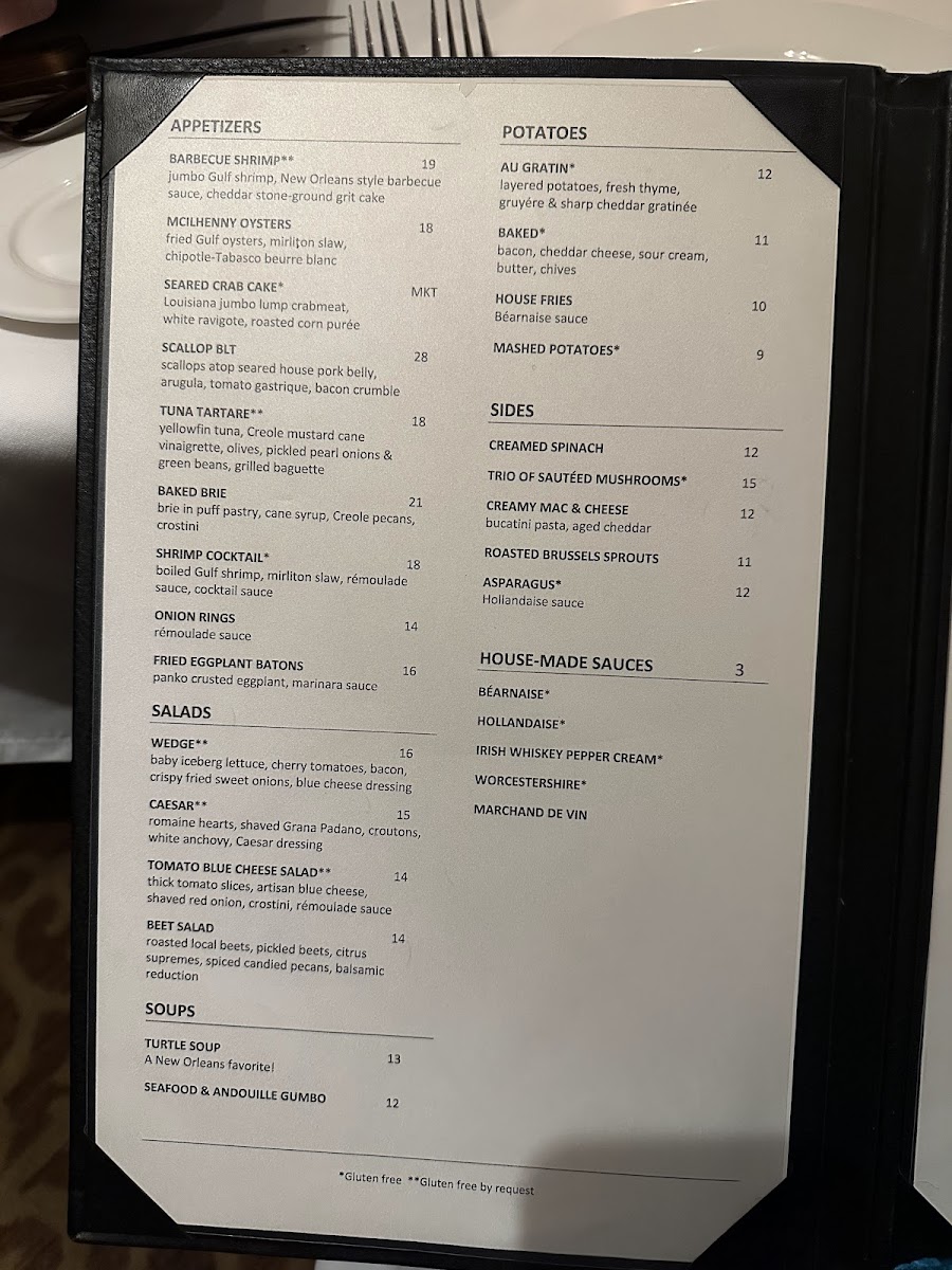 This premier steakhouse prides itself on serving the finest cuts of beef, beautifully prepared and meticulously presented. Indulge in mouthwatering dishes such as the Chateaubriand, a stunning 20 oz. tenderloin for sharing, or savor the exquisite Beef Wellington, a Louisiana Coastal Plains tenderloin elegantly wrapped in mushroom duxelles and house tasso, all encased in a delicate butter pastry—an experience that’s worth writing home about! If you're in the mood for something substantial, their 38 oz. Prime Porterhouse offers a feast for meat lovers, promising decadence in every bite. Each dish sings with flavors that dance on the palate, expertly crafted to showcase the rich traditions of New Orleans' culinary heritage.
